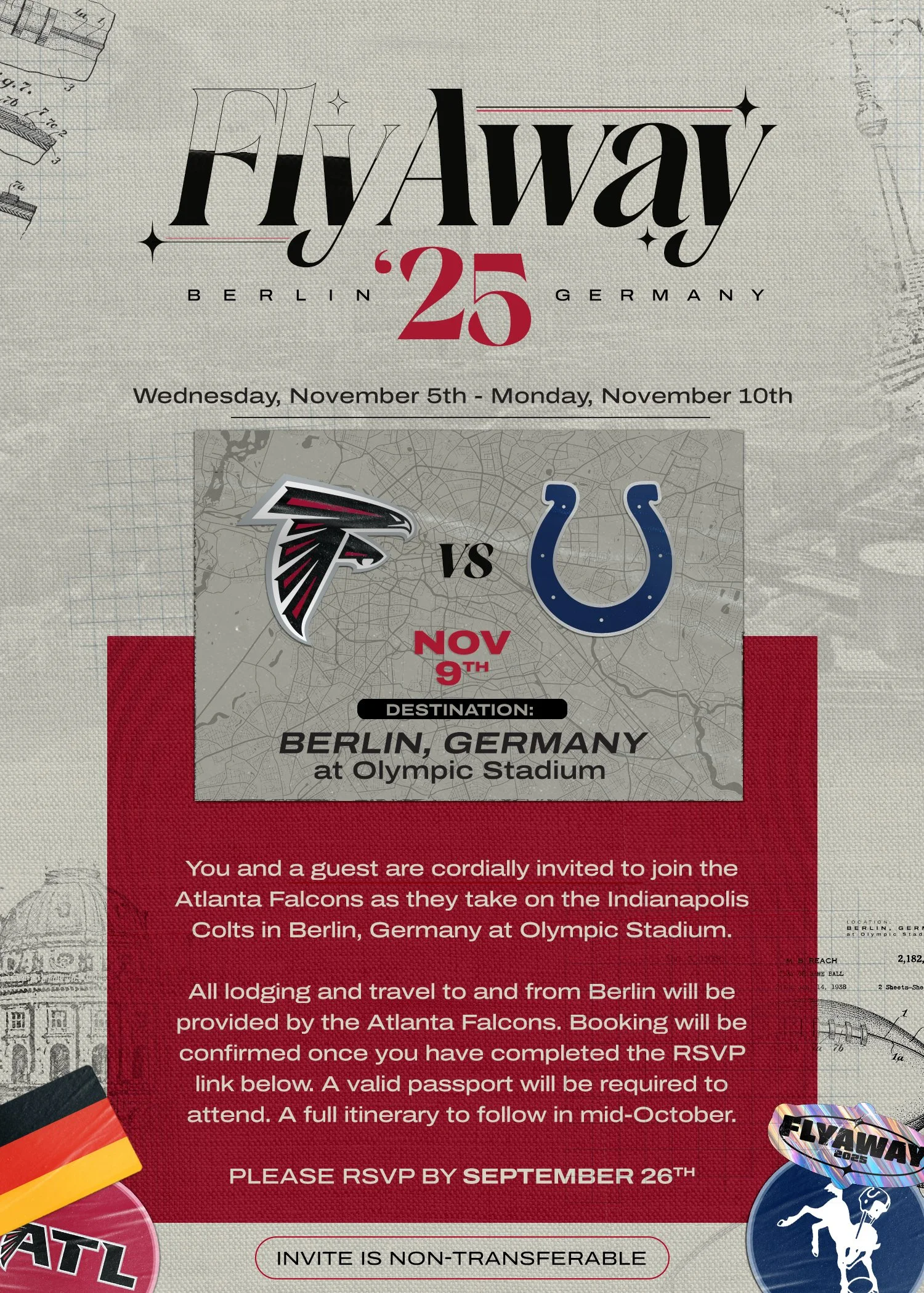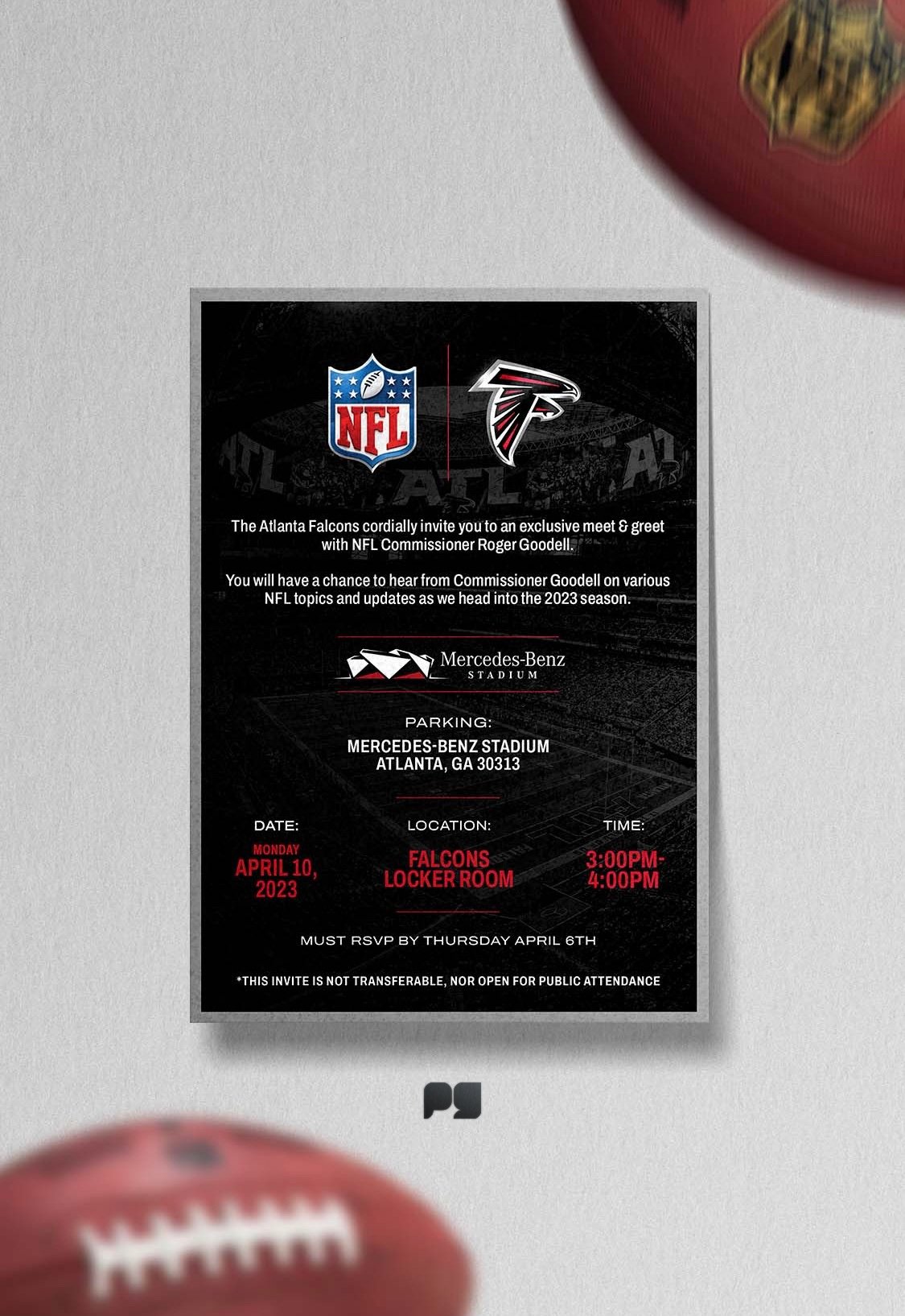 The 2025 Atlanta Falcons Flyaway in Arizona is an exclusive away-game experience where we’ll be hosting 100+ VIP guests in Phoenix for a unforgettable weekend. I designed this hero flyer to lead the creative rollout, capturing both the energy of the Falcons and the vibrant desert atmosphere of Arizona. Featuring key players, bold team branding, and destination-inspired visuals, the design sets the tone and builds excitement for the trip. I developed the full creative direction and promotional assets to support this year’s Flyaway.